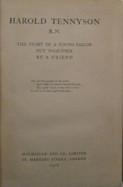 Harold Tennyson R.N., The Story of a Young Sailor, Put Together by a Friend.