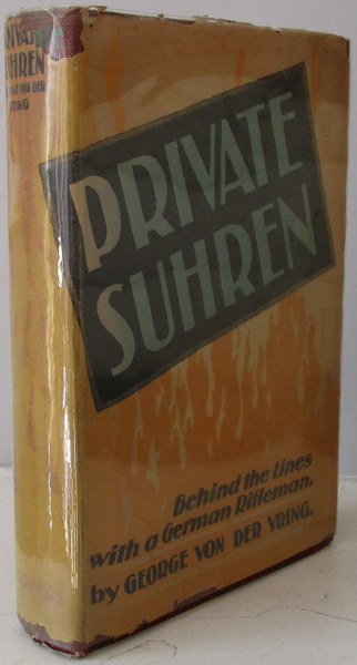 Impressions of the war on an 'ordinary' German soldier, the cover line being 'Behind the lines with a German rifleman.' Published first in Zurich in 1927 then (as here) in America in 1928 & in England by Methuen in 1929. The author (1889-1968) served as an infantry officer on both Eastern & Western Fronts, & was several times wounded, so he was supremely qualified to write this book, one of the earliest German novels on the war. He was a noted poet who aligned himself with the Nazis but remained famed in Germany post-war. Orig. red cloth, VG in split/worn but rare dw. See illustrations on our website.