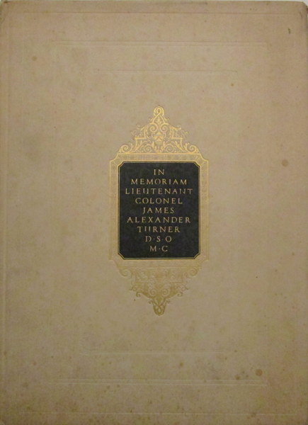 In Memoriam. To the Memory of Lieutenant-Colonel James Alexander Turner, D.S.O., M.C., A Gallant Soldier Who Served His Country in the Great War 1914-1918 And Fell in the Battle of Buzancy on July Twenty-Six Nineteen-Eighteen. A Short History of His Life and Military Career.