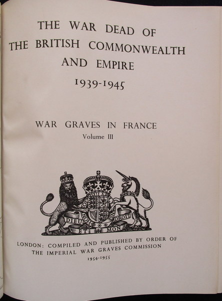 The War Dead of the British Commonwealth & Empire 1939-1945: War Graves in France. Volume III.