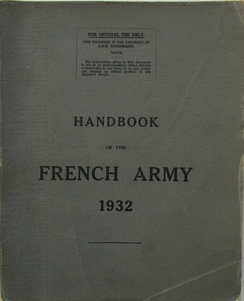 For Official Use Only & just 800 copies printed. Contains comprehensive details of the nation's military capabilities, organisation of the various arms of the service (infantry, artillery, tank bns., overseas & colonial units, & so forth), &c. Orig. grey limp cloth. VG & rare but lacking three fldg. maps/plans from endpocket. See illustration on our website.