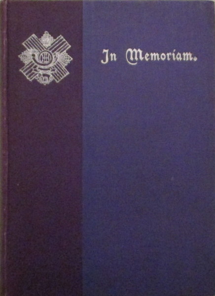Alexander Roxburgh Murray was educated at Glasgow Academy where he excelled at athletics and Rugby Football. Leaving school in 1915 he was commissioned in the 17th (Service) Battalion Highland Light Infantry (The Glasgow Chamber of Commerce battalion) and went to France in July 1916. He was just eighteen when he fell on 18th November 1916 and is buried in New Munich Trench British Cemetery, Beaumont Hamel. This small book, printed on art paper throughout, contains a 'photographic essay' of his young life, growing up in China and Scotland, and later in uniform, followed by several pages of extracts from letters of condolence. Orig. purple cloth, silver gilt to front board with H.L.I. badge & "In Memoriam." VG & rare.