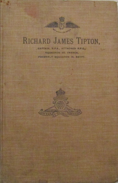 Captain Richard James Tipton, 3rd West Lancs. R.F.A., attached to the Royal Flying Corps, was born in 1892 and educated at Birkenhead School. He served with 14th Squadron R.F.C., based in Egypt, and was twice Mentioned In Despatches. On June 18th, 1916, he was forced down in Turkish territory during a bombing raid. He famously escaped from Kastamuni PoW Camp in Turkey along with E.H. Keeling, H.C.W. Bishop (who both wrote books recounting this adventure) & Capt. R.T. Sweet of the Gurkhas (who was killed during the escape). The three survivors crossed the Black Sea in a twenty-five foot fishing boat. Captain Tipton returned to active duty with the R.F.C. and was wounded in aerial combat on 9th March 1918: although mortally wounded he landed his aircraft, was taken to 1st Canadian Casualty Clearing Station, and there died of wounds on 12th March. He was twenty-five years old and is buried in Barlin Communal Cemetery Extension. The first section of the book contains a short memoir and a selection of letters of condolence, followed by a reprint of Captain Keeling's account of the escape from Kastamuni and voyage across the Black Sea to safety which was first published in Blackwood's magazine in May 1918. Brown cloth blocked with title, RFC wings and RA badge to front, little marked, VG.