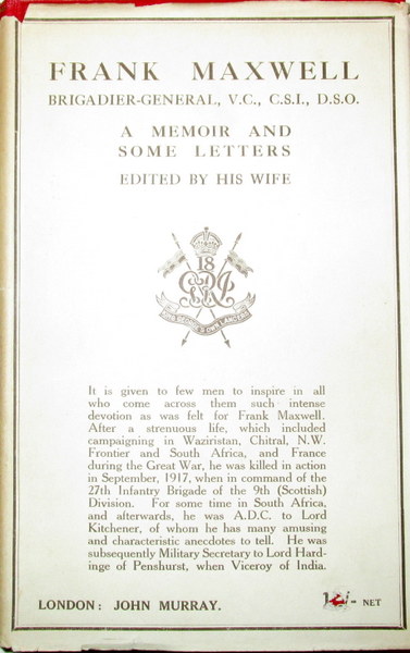 Frank Maxwell, Brig.-General, VC, CSI, DSO: A Memoir & Some Letters.