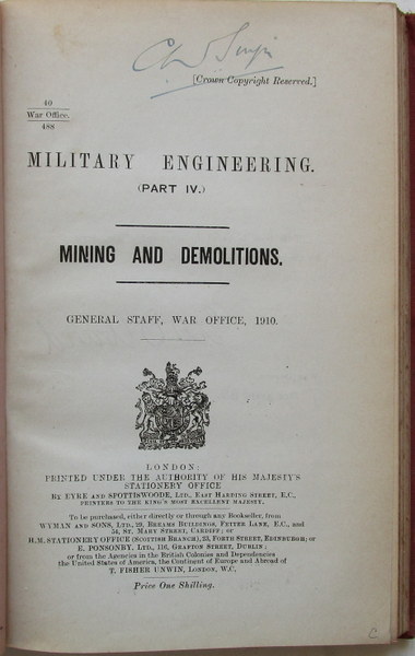 General Staff, War Office, 1910. vii+116pp., 39 plates (sketches & diagrams). HMSO.