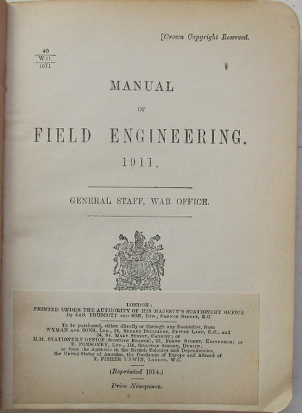 Manual of Field Engineering. 1911 (Reprinted 1914). General Staff, War Office.