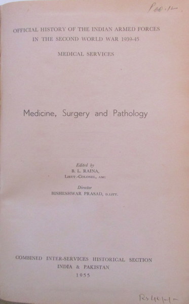 The war against wounds & sickness, "mainly limited to India, Burma, South-East Asia & West Asia, where the Indian troops were largely deployed." A substantial volume of the Indian official medical history. Orig. maroon cloth, sp. worn, generally VG.