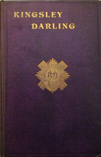 Captain James William Kingsley ("Lovey") Darling, born in 1894 and educated at Merchiston Castle School, enlisted in the 9th Royal Scots in August 1914, was commissioned in October and posted to Gallipoli in September 1915, where he was attached to the 2nd Battalion Hampshire Regiment. He later served with the 5th Royal Scots (later 5/6th Battalion) on the Western Front, was wounded in December 1917 and killed in action on 11th August 1918. He was twenty-four years old and is buried in Bouchoir New British Cemetery. (His family also erected a granite Celtic cross in Dean Cemetery, Edinburgh, in his memory.) The work almost entirely consists of his wartime letters from Gallipoli and France, together with a number of tributes and extracts from letters of condolence, also some copies of letters of condolence that Darling wrote to the mothers of fallen brother officers. "Lovey" Darling's letters contain some atmospheric passages; e.g. at Gallipoli in October 1915 "the hills are very pretty, and there are quite a number of trees about the place. At night the sunsets are very fine…" but in Krithia Nullah, "The trenches were a perfect maze, and terribly knocked about by shell fire. Dead lay here and there along the parapets, and along the trench itself, feet, hands, bits of body, etc., were sticking out. Several graves marked the spot where those who had fallen among friends lay, and slept their last sleep. Up on top of the nullah a Turk lay, almost falling over the edge of the cliff, with a big hole in his head." Purple cloth, gilt, regimental badge to front, VG with inscription "To Mrs A. Robertson. 11th August 1919,"