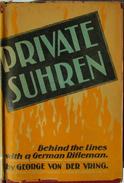 Impressions of the war on an 'ordinary' German soldier, the cover line being 'Behind the lines with a German rifleman.' Published first in Zurich in 1927 then (as here) in America in 1928 & in England by Methuen in 1929. The author (1889-1968) served as an infantry officer on both Eastern & Western Fronts, & was several times wounded, so he was supremely qualified to write this book, one of the earliest German novels on the war. He was a noted poet who aligned himself with the Nazis but remained famed in Germany post-war. Orig. red cloth, VG in split/worn but rare dw. See illustrations on our website.