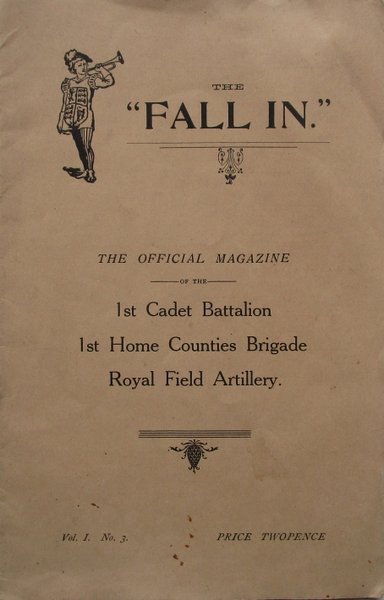 The "Fall In." The Official Magazine of the 1st Cadet Battalion, 1st Home Counties Brigade Royal Field Artillery. Vol. I. No. 3. December 1916.