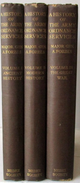 A History of the Army Ordnance Services. Vol. I: Ancient History, Vol. II: Modern History. Vol. III: The Great War.