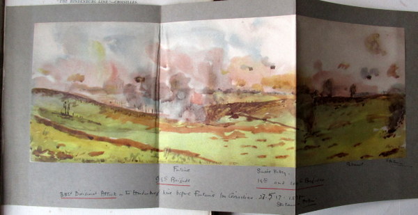 Western Front 1915-18. Hutchison, a curious but brave individual, commanded the 33rd Bn. MGC, notably at the defence of Meteren during the German Lys Offensive in 1918 (an incident somewhat devalued by his repetition of the story at every possible opportunity). Sassoon served with 2/RWF in the Div. & is listed among the wounded at Arras in 1917. Various rolls of staff, officers & casualties. This superior edition contains 16 col. prints of Western Front scenes depicted by Hutchison, some purportedly drawn whilst in action, each tipped onto card & individually captioned & signed in ink by the artist, also present are several panoramic views &c. not present in the more common (but in itself scarce) standard edition. Somewhat marked/won but complete & sound. See illustrations on our website.