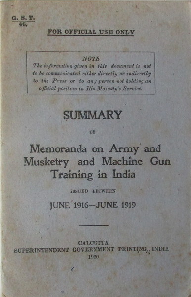 [G.S.T. 46.] Summary of Memoranda on Army Musketry & Machine Gun Training in India issued between June 1916 - June 1919.