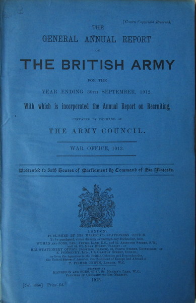 General Annual Report on The British Army For the Year Ending 30th September, 1912, With Which is Incorporated the Annual Report of Recruiting. Prepared by Order of the Army Council. War Office, 1913.