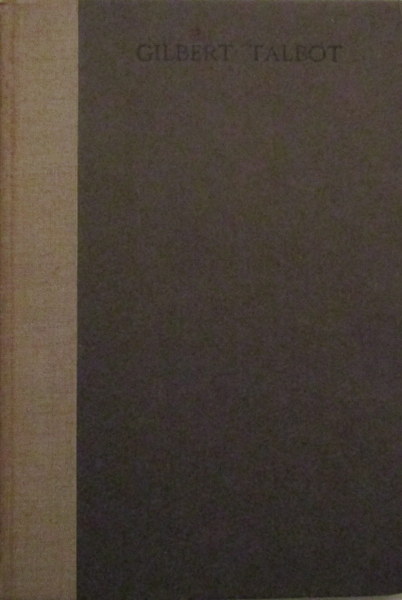 Walter Lyttelton Talbot was born in 1891 at his father's vicarage in Leeds. His father became Lord Bishop of Winchester and Talbot was educated at Winchester and Christ Church College, Oxford. He was President of the Oxford Union (a family tradition) and his ambition was to enter the political arena, however this and plans for a world tour were frustrated by the outbreak of war. Talbot obtained a commission in the 7th (Service) Battalion Rifle Brigade, one of the earliest New Army battalions to be formed. He proceeded with his unit to Flanders in May 1915 and was killed in action at Hooge on 30th July, 1915, in his Battalion's counter-attack following the German 'liquid fire' attack on the 8th Rifle Brigade. He was twenty-three when he fell and is buried in Sanctuary Wood Cemetery. Talbot House, the famous soldiers' club at Poperinghe, founded by his brother Rev. Neville Talbot (formerly of the Rifle Brigade) and Rev. 'Tubby' Clayton, was so named in his memory. Contains a memoir of his life with numerous tributes and eulogies from various friends, also lengthy extracts from his diary in Flanders describing his work in the line, various carrying parties etc., and scenes he observed, e.g. the appearance of Ypres (from his diary entry of 15th June 1915): "I despair of telling you what the place looks like. It beggars description. The suburbs of the town are comparatively intact, though most houses there have been shelled. But the whole inside is simply a desolation. You cannot imagine it being rebuilt. We walked through the streets and found not one house which was not a mere mass of ruins or just a big heap of bricks. Of course there are fragments that remain, some with old familiar advertisements – I saw one of Singer's Sewing Machines. Odder than anything is to go into any of the ruined houses. They nearly all show signs of being abandoned in panic, without their owners waiting so much as to pick up anything: half eaten meals are on the tables: clothes lie in confusion on the floors… And then we came into the famous Place. The Cloth Hall, roofless and ruined, lies all the way down one side… The whole square is covered with loose stones and rubble… there's not a living soul to be seen, apart from passing British soldiers… Nothing has brought home the war to me as has this town. Its people had no connection with the war, no interest in the war, and their lovely home has been gutted until its unrecognizable. I wish everybody in England could see it…" Rare original privately printed edition with real photo. portrait frontis., inscription on half-title: "To E. & Evelyn Jackson in memory of Gilbert Talbot from his mother. July 1916. + Hooge July 30 '15." Orig. printed paper covd. boards with cloth backstrip, VG.