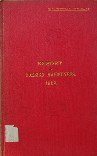 Official report based largely on information supplied by Military Attaches with various Courts, whose duties included attending the annual manoeuvres of their host nation. This volume includes the armies of Austria-Hungary; China; Denmark; France; Germany; Greece; Italy; Japan; Russia; Switzerland & the USA. This edition includes much detail on the various German army corps. Orig. red cloth covd. boards, gilt to front & sp., ex-RUSI, very nice copy thus & scarce (750 copies printed).