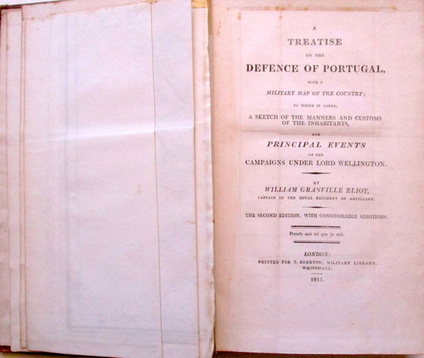 Rare contemp. work. containing a geographical description of the country, observations on the defences of it, notes on the Portuguese Army & the language, manners & customs of the people; Travelling - including Inns & Accommodation on the Road, &c., followed by a Sketch of the recent campaigns in Portugal & chapters on the operations in 1809 (Talavera &c.) & 1810; then finally notes on principal routes, with distances between them (& between the principal towns in Portugal & Spain). Contemp. brown calf, little rubbed & worn, generally VG, two old tape repairs to the the fldg. map of the country, VG thus with armorial bookplate of one G.H. Carriden.