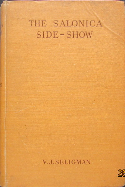 Personal impressions of an Army Service Corps officer with 60th Div. during 1917-18. Seligman was a young officer who left Charterhouse early in the war. Falls writes: "His book consists of a series of sketches, most of them slight in nature, of conditions during the campaign in Macedonia. One or two of the papers are of a more serious kind, & all give a good notion of the atmosphere of this curious campaign of many nationalities." One notable light-hearted but useful descriptive piece is "Maxims of a Supply Officer" in which the author explains the problems of balancing units' expectations with available supplies, et al. Orig. wheat cloth, titled in brown, minor wear, VG, scarce.