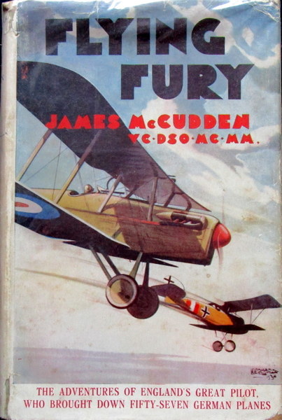 An RFC fitter in 1914, McCudden became a leading ace with 57 aerial victories. Wrote these memoirs of service as fitter, observer & pilot shortly before being killed in a flying accident in 1918. Orig. black cloth, titled in red, VG in somewhat chipped but attractive & scarce dw.